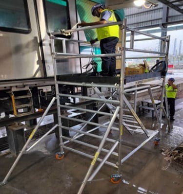 Repair and maintenance of a mobile ladder base assembly
